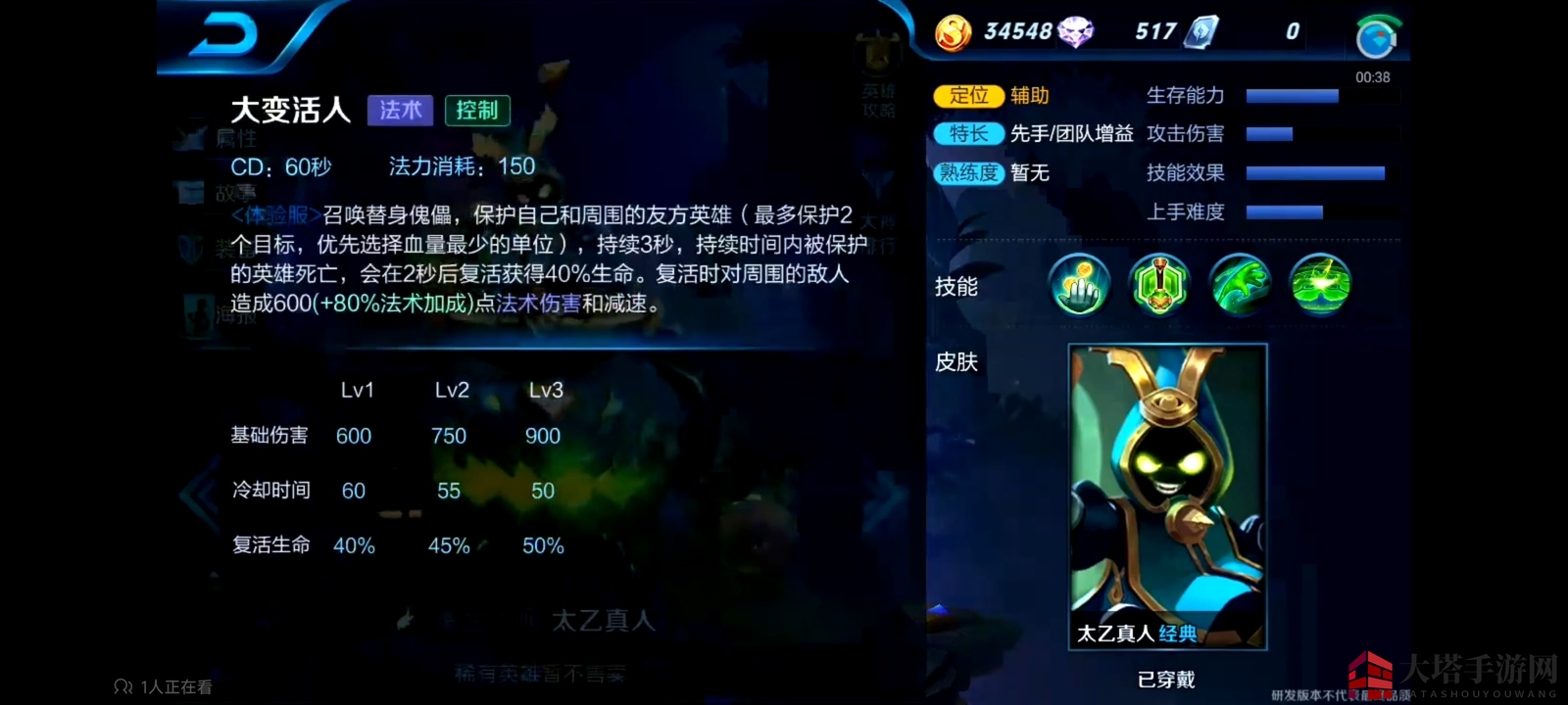 众多玩家误以为,在未改版前或在测试服中的太乙真人大招能够复活周围队友,甚至包括自己。然而,根据之前的设定,仅能复活两个目标,包括自己,所以无法实现复活五人的壮举。
